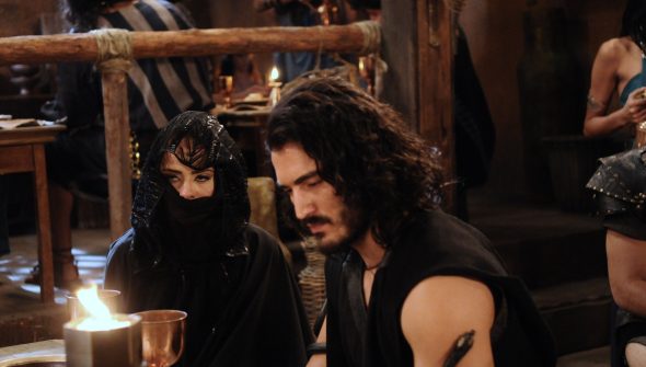Sandor consegue despistar Kadmo. Raabe se recusa a dizer o nome de seu cliente. Acsa vai até a tenda de Darda para visitar Otniel. Salmon conversa com Lila e diz se sentir culpado. Acsa pede perdão a Otniel. Discretamente, Aruna levanta a noite e vai ao encontro de Adara. Ela pergunta se a mulher misteriosa conheceu sua mãe. Léia impede que Samara saia para observá-las. Adara começa a enganar Aruna inventando uma história sobre o seu passado. Tupak surpreende Sandor no palácio e diz que Kalesi deseja vê-lo imediatamente. A rainha começa a seduzir o filho de Tibar. Otniel desmaia e Darda diz que o rapaz está morrendo. Sandor tenta, mas não resiste à sedução de Kalesi. Tibar ameaça Raabe exigindo saber com quem ela estava. Aruna se surpreende ao ouvir Adara dizer que é sua mãe. Tibar começa a chorar pedindo o amor de Raabe. Aruna diz que precisa de um tempo para pensar no que Adara disse. Darda e Jessana socorrem Otniel e ele reage. Samara finge estar preocupada com Aruna. Adara aproveita a ausência de Aruna e começa a roubar objetos na tenda de reuniões. Léia e Samara dão um saquinho de ouro para Adara pelo serviço prestado. Temendo qualquer problema, elas pedem para a mulher deixar o acampamento imediatamente. Enquanto se entrega nos braços de Kalesi, Sandor acaba chamando a rainha pelo nome de Raabe. Farduc encerra o expediente na estalagem. Raabe se recorda de Salmon. Otniel recupera a consciência e conversa com Salmon sobre a ida a Jericó. Tibar encontra com Sandor no palácio. Eles conversam sobre o poder de sedução das mulheres. Kalesi tenta esconder sua insatisfação para Marek. Raabe chega em sua casa e se lembra de Salmon. Ela diz para Milah que os hebreus logo chegarão a Jericó. Amanhece no acampamento hebreu. Aruna disfarça e diz que precisa sair antes do café da manhã. Samara afirma que ela irá procurar por Adara. Josué pede para falar em particular com Aruna, mas ela diz que precisa resolver um assunto importante. Rune se declara para Livana, mas ela o rejeita. Kalesi procura Merodaque para reclamar do feitiço feito. A rainha avisa que se Sandor não for dela, ele não será de ninguém. Nobá diz que é hora de escolher um novo líder para os Lagartos. Marek pede para Sandor trazer Tobias para uma luta. Samara e Léia conversam e são surpreendidas com a chegada de Josué.