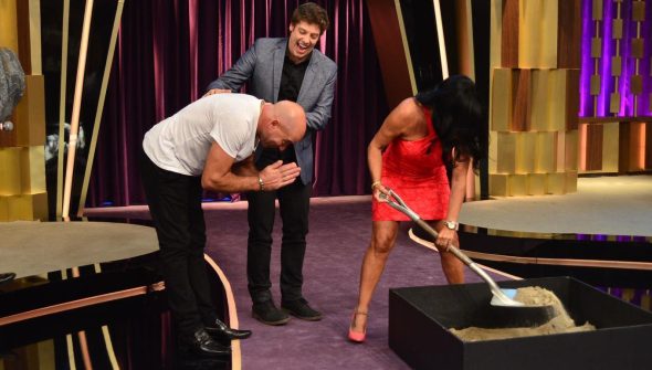 Após o bate-papo, Gretchen “enterrou” literalmente os assuntos que mais a deixam incomodada: 17 ex-maridos e os filmes proibidos de que ela participou. O programa colocou no palco uma caixa de areia e dentro os dois assuntos escritos num papel. Ela pegou a pá e enterrou com areia os temas do passado que sempre a perseguem. Ela ainda participou de um divertido esquete com Porchat em que brinca com esse assunto de ter casado várias vezes.