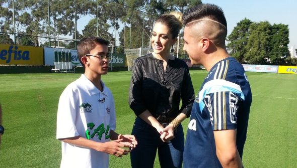 Nesta terça-feira, a equipe do Esporte Fantástico levou o são-paulino Gabriel ao centro de treinamento do Palmeiras para conhecer os jogadores do verdão e conversar com Cristaldo. E o argentino contou a novidade a Gabriel.