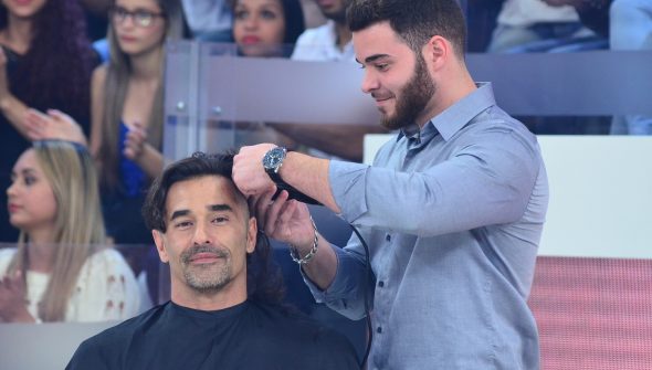 Luciano Szafir fica careca durante o programa Domingo Show