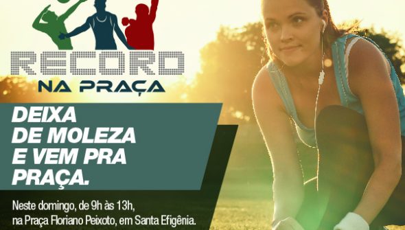 A Record Minas realizará mais uma edição do “Record na Praça”, no próximo domingo (27/04). A população será beneficiada com atendimentos gratuitos na Praça Floriano Peixoto, localizada no bairro Santa Efigênia, região leste de Belo Horizonte, entre 9h e 13h. Toda a família poderá participar das atividades que envolverão exercícios como alongamentos, orientação postural, rodadas de vôlei, basquete e futebol. Serviços como aferição de pressão arterial e orientações de como adotar uma vida mais saudável também estarão à disposição da população.